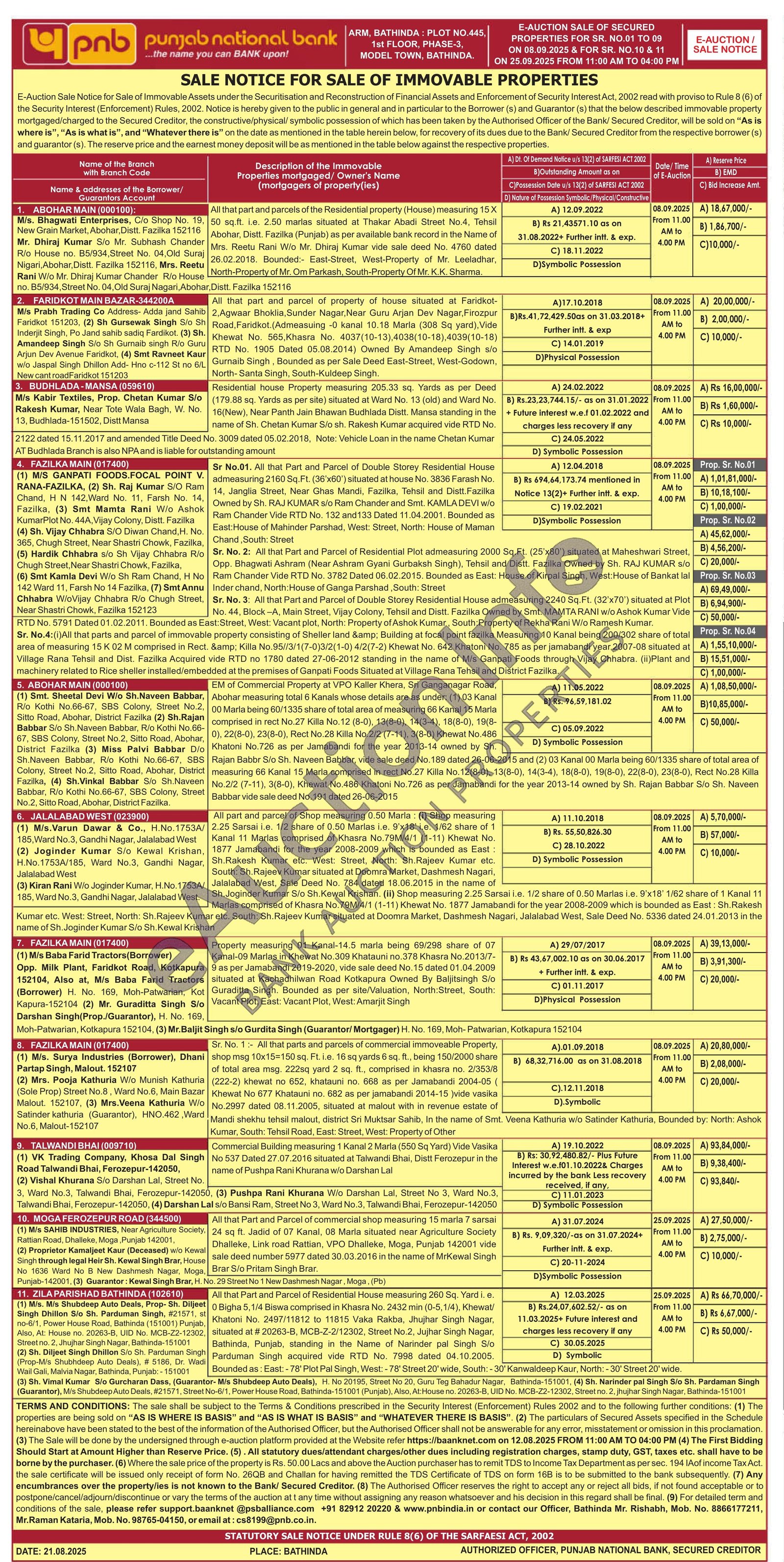 All that Part and Parcel of Residential House measuring 260 Sq. Yard i. e. 0 Bigha 5, 1/4 Biswa comprised in Khasra No. 2432 min (0-5, 1/4), Khewat/Khatoni No. 2497/11812 to 11815 Vaka Rakba, Jhujhar Singh Nagar, situated at # 20263-B, MCB-Z-2/12302, Street No.2, Jujhar Singh Nagar, Bathinda, Punjab, standing in the Name of Narinder pal Singh S/o Parduman Singh acquired vide RTD No. 7998 dated 04.10.2005. Bounded as: East: -78' Plot Pal Singh, West: -78' Street 20' wide, South: -30' Kanwaldeep Kaur, North: -30' Street 20' wide.