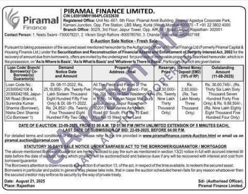 All The Piece and Parcel of The Property Having An Extent-Fat No. 201 1st Floor Maa Residency 4th in P No. 14 Kalyan Nagar Murlipura Jaipur Jaipur Jaipur Rajasthan 302013 Boundaries As-North. Road 66 South: Plot No-13 East Plat No-15 West: other Land