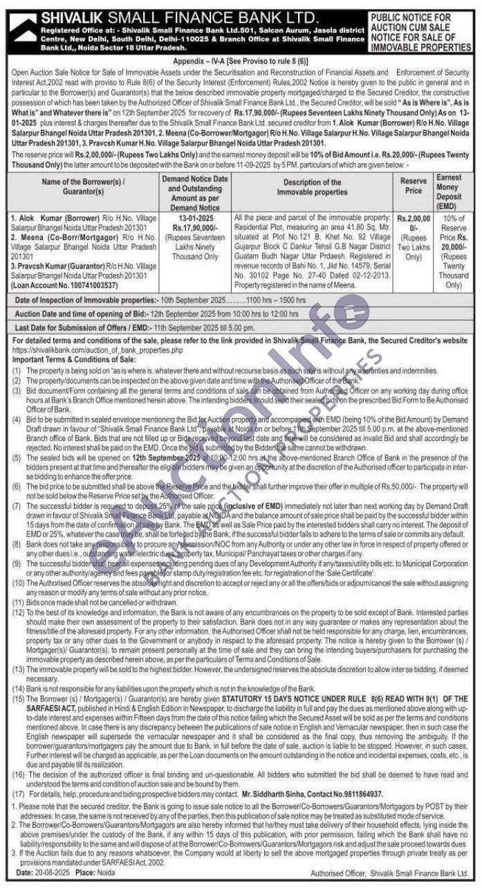 All the piece and parcel of the immovable property: Residential Plot, measuring an area 41.80 Sq. Mr. situated at Plot No.121 B. Khet No. 92 Village Gujarpur Block C Danikur Tehsil G.B. Nagar District Guatam Budh Nagar Uttar Prdaesh. Registered in revenue records of Bahi No. 1, Jild No. 14579, Serial No. 30102 Page No. 27-40 Dated 02-12-2013. Property registered in the name of Meena
