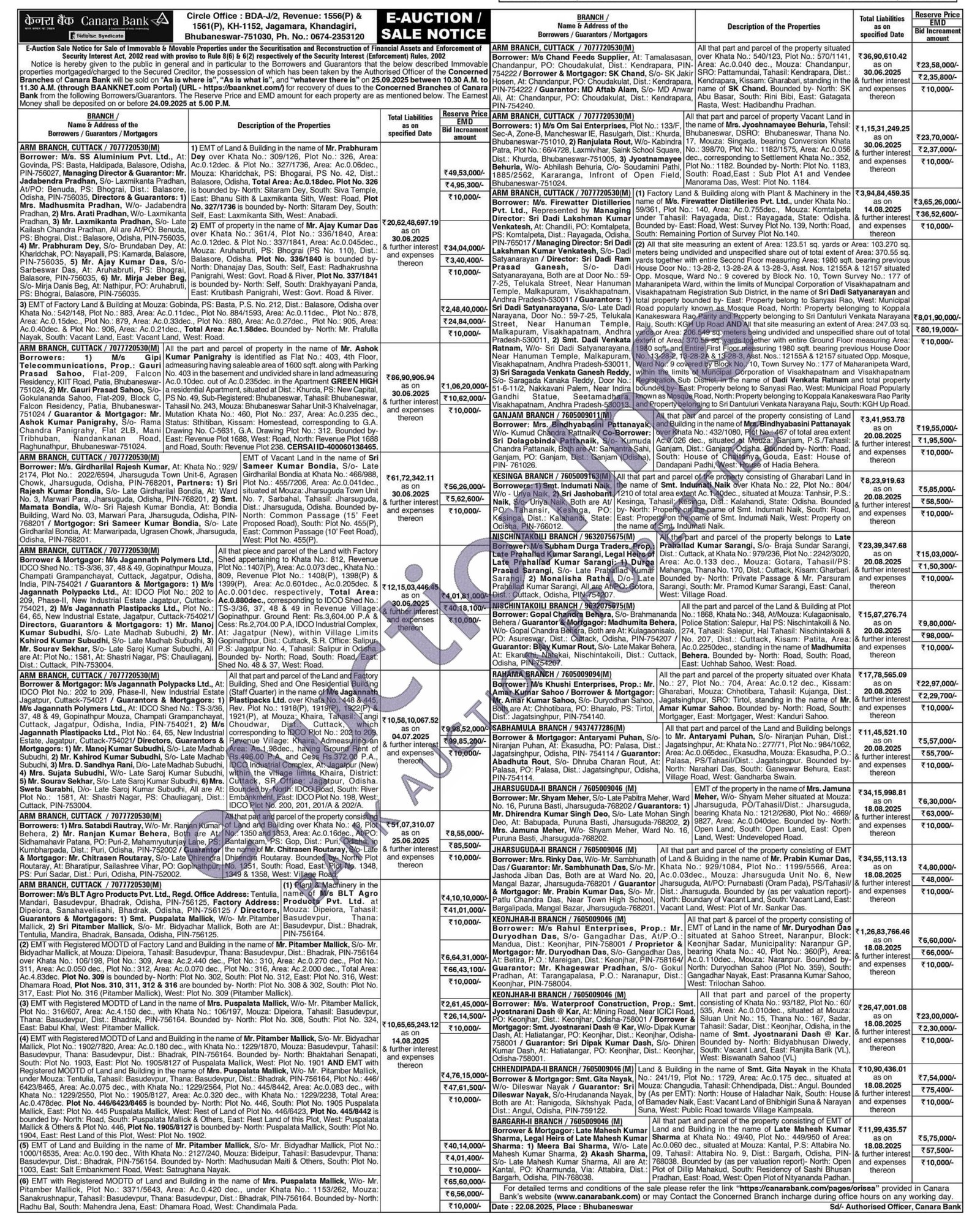 All that part and parcel of the property consisting of Khata No.: 93/182, Plot No.: 60/535, Area: Ac.0.010dec., situated at Mouza: Siluan Unit No.: 15, Thana No.: 167, Sadar, Tahasil: Sadar, Dist.: Keonjhar, Odisha, in the name of Smt. Jyostnarani Dash @ Kar. Bounded by North: Bidyabhusan Diwedy, South: Vacant Land, East: Ranjita Barik (VL), West: Biswanath Sahoo (VL)