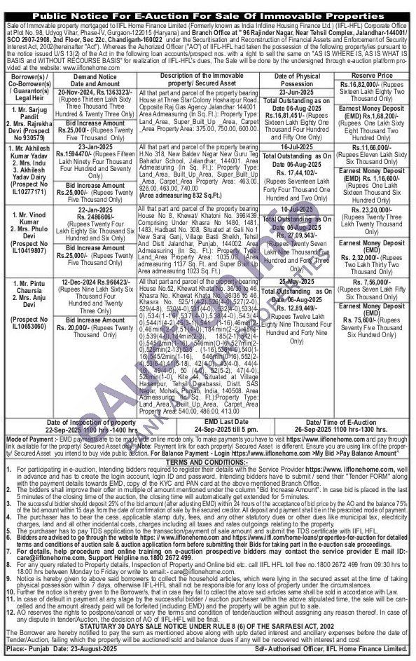 All that part and parcel of the property bearing H.No 318. New Baldev Nagar New Guru Teg Bahadur School, Jalandhar, 144001. Area Admeasuring (In Sq. Ft.): Property Type Land Area, Built Up Area, Super Built Up Area, Carpet Area Property Area: 463.00, 926.00, 463.00.740.00 (Area admeasuring 832 Sq.Ft