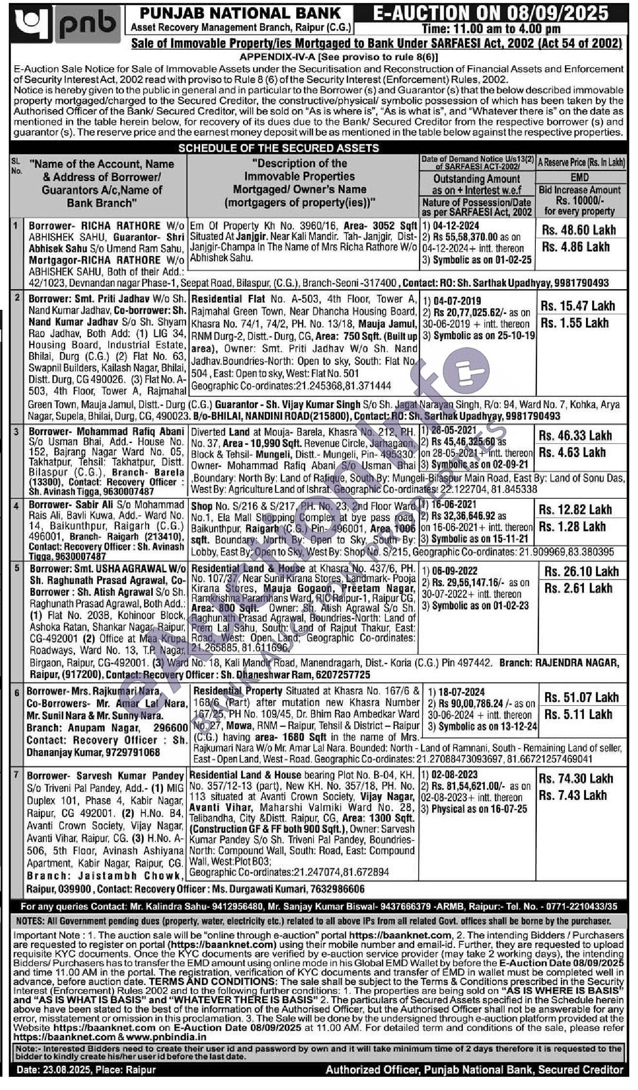 Contact: Mr. Kalindra Sahu-9412956480, Mr. Sanjay Kumar Biswal- 9437666379-ARMB, Raipur:- Tel. No. 0771-2210433/35