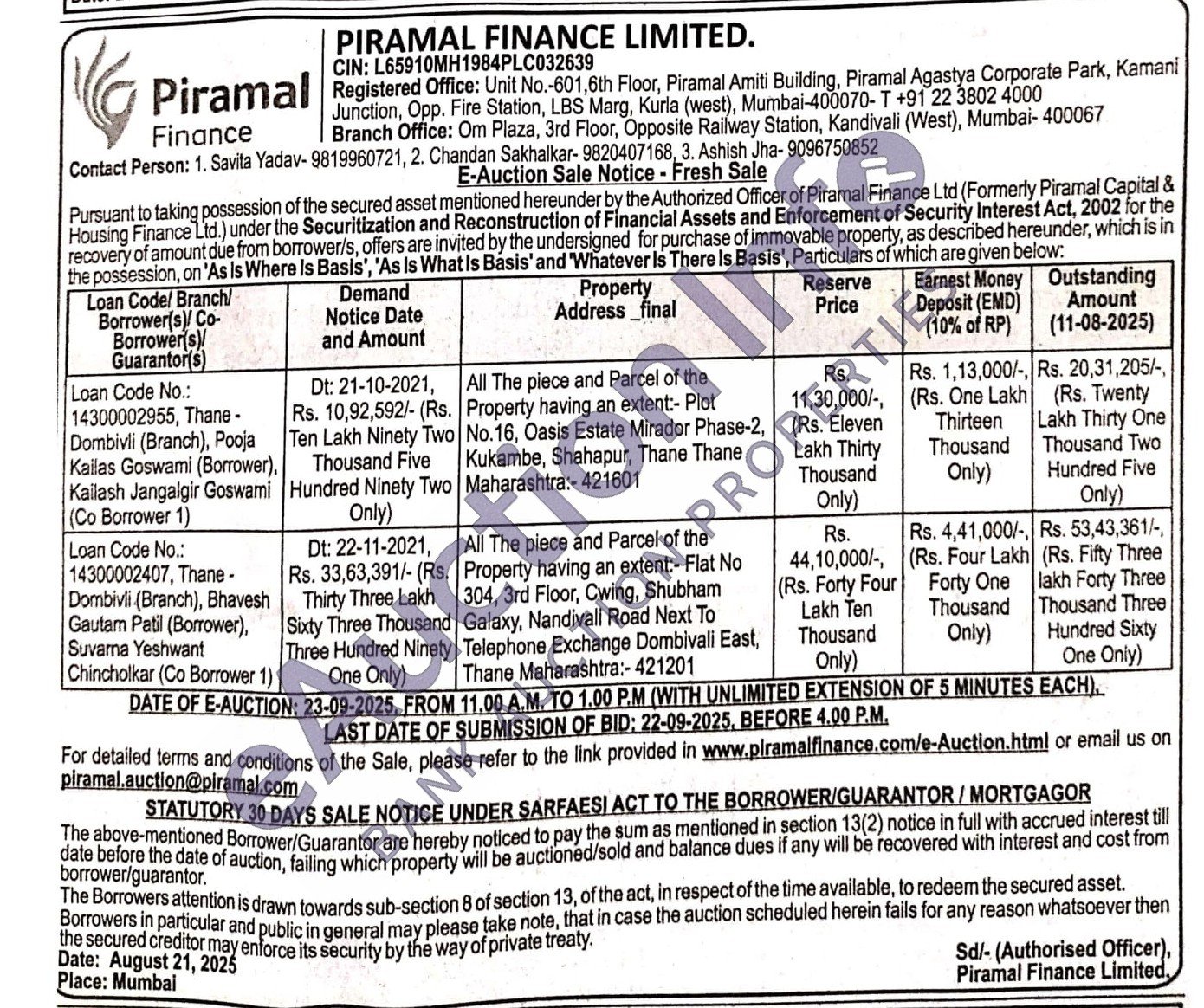 1) All The piece and Parcel of the Property having an extent:- Plot No.16, Oasis Estate Mirador Phase-2, Kukambe, Shahapur, Thane Thane Maharashtra:-421601