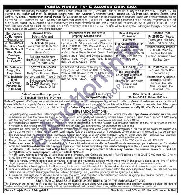 All that part and parcel of the property bearing: Property out of Khewat no.1004 Khatoni no 2795 to 2804 Situated in Vill. and Teh. Bareta Distt. Mansa Punjab, 151501 Land Area, Built Up Area 1129.00, 1129.00