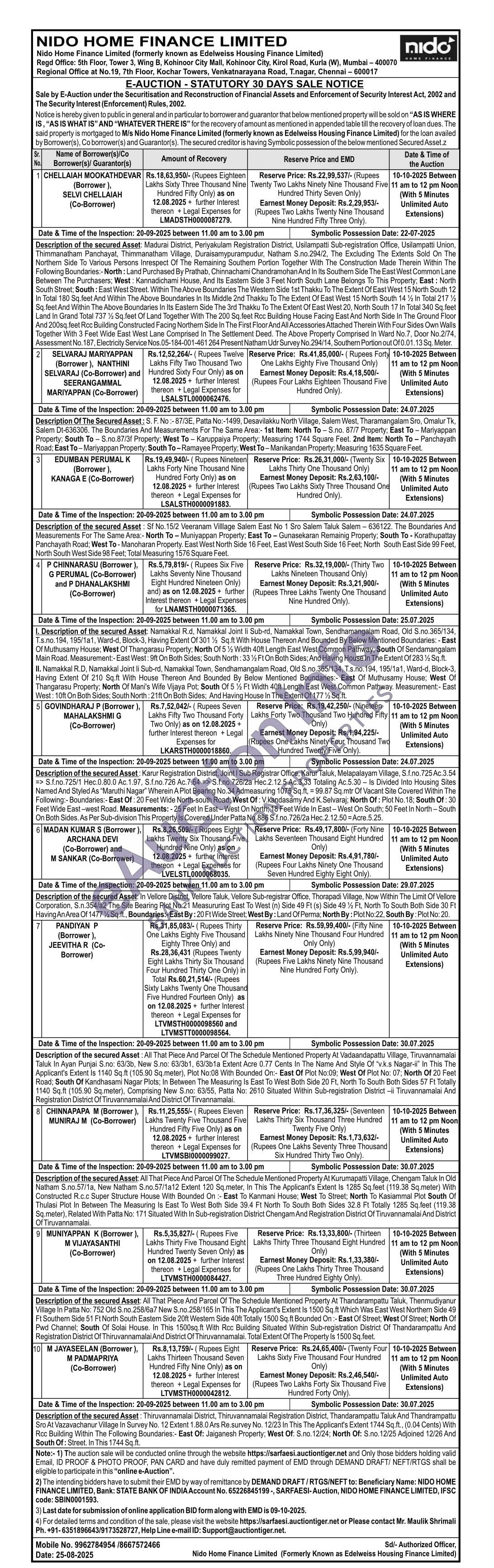 Description of the secured Asset: Thiruvannamalai District, Thiruvannamalai Registration District, Thandarampattu Taluk And Thandrampattu Sro At Vazavachanur Village In Survey No. 12 Extent 1.88.0 Ars Re.survey No. 12/23 In This The Applicant's Extent 1744 Sq.ft., (0.04 Cents) With Rcc Building Within The Following Boundaries:- East Of: Jaiganesh Property; West Of. S.no. 12/24; North Of: S.no. 12/25 Adjoined 12/26 And South Of: Street. In This 1744 Sq.ft.