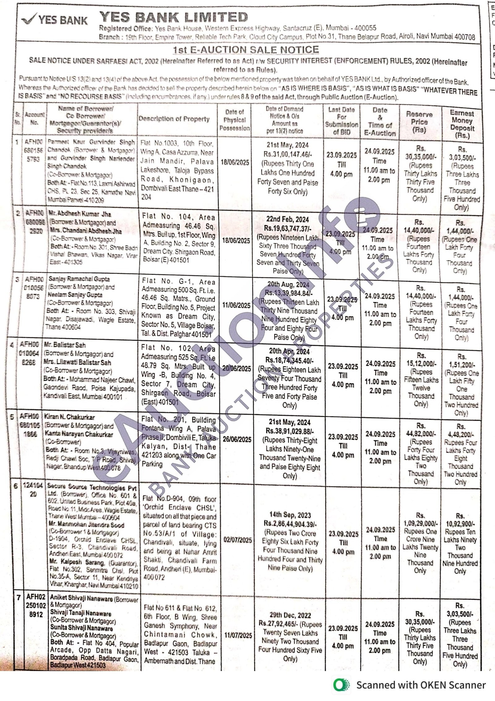 5) Flat No. 201, Building Fontana Wing A, Palava Phase II, Dombivili E, Taluka Kalyan, Dist- Thane 421203 along with One Car Parking
