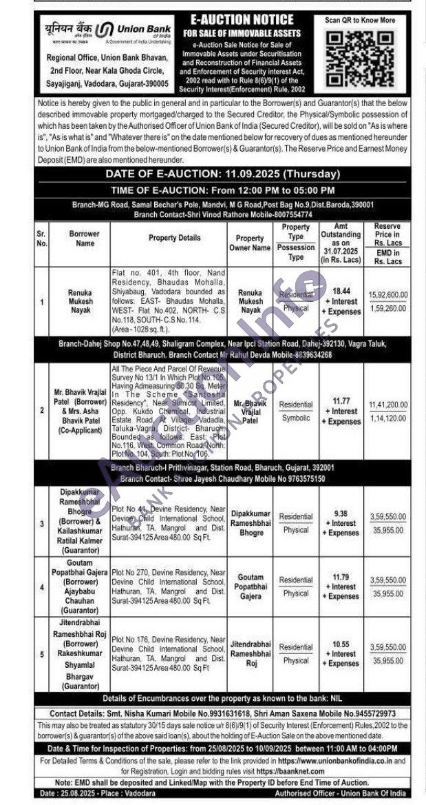 All The Piece And Parcel Of Revenue Survey No 13/1 In Which Plot No. 105, Having Admeasuring 50.30 Sq. Meter In The Scheme "Santosha Residency". Near Sumicot Limited, Opp. Kukdo Chemical, Industrial Estate Road, At Village- Vadadla, Taluka-Vagra, District Bharuch. Bounded as follows: East: Plot No.116, West: Common Road, North: Plot No. 104, South: Plot No. 106