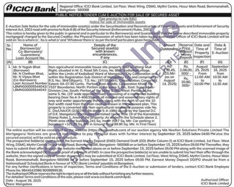 Non-agricultural immovable house site property held on Warg/ Muli Right, situated in M. G. Rood 5th Cross, No. 89A-Kodialbail village, within the Limits of Kodialbail Ward of Mangaluru City Corporation and within the Registration Sub-District of Mangaluru City and comprised in: R.S. No.: 364/18(part), T.S. No: 197/18(part), Classification: Converted. Extent: 0A-07.90 Cents, Portion: East-Middle, Corporation Khata No. Division Line, South: Portion of the same S. No., West: Portion of the same S. No. (15' wide approach road) Consisting of a residential building bearing Door No.4-3-406/20 with all mamool and easementary rights of way and water appurtenant thereto along with the right to use the 10 feet width road from the main road as shown in the annexed plan. This property is converted into Non-agricultural residential purpose vide No. C. Dis/LNA/CR (2)307/83-84 dated 5-4-1984 issued by the Special D.C of D.K. Mangaluru. Particulars Furnished Under Rule 19 of the Karnataka Stamp Rules 1. Area of the property: As stated in the Schedule above 2. Plinth area of the building: 241 Sq. meter (50.7 Sq. Mtr. Car parking in bosement +101.30 Sq. Mtr in Ground Floor 89.90 Sq. Mtr. In First Floor)
