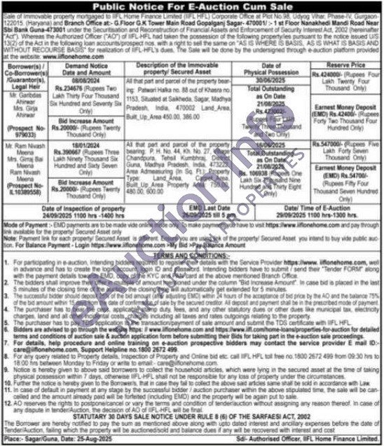Al that part and parcel of the property bearing. P. H. No. 44. Kh. No. 27. Vilage Chandpura Tehsil Kumbhraj District Guna, Madhya Pradesh, India, 473222. Area Admeasuring (in Sq Ft) Property Type, Land Area, Carpet Area. Built Up Area Property Area: 750.00. 480.00, 600.00