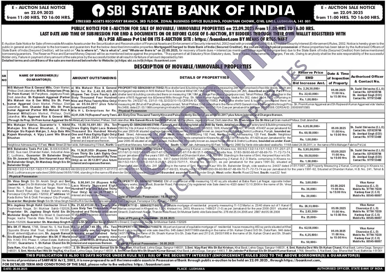 PROPERTYID: SBIN0527100278: All part and parcel of equitable mortgage of residential house measuring 463 sq yards situated at Khai Basti Lehra registered vide sale deed No. 945 dated 24/07/1989 standing in the name of Sh. Kahan Chand S/O Sh. Data Ram, 946 dated 24/07/1989 in the name of Sh. Shashi Kumar S/o Sh. Data Ram and 2112 dt. 29/03/1995 in the name of Sh. Kahan Chand and Sh. Shashi Kumar Ss/o Sh. Data Ram