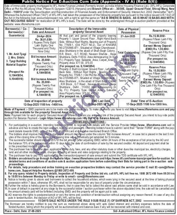 Built Up Upper Ground Floor, Left Hand Back Side, Without Roof Rights, Bearing Part of Property No. 776/B-1 (Old Plot No 2), out of Khasra No 2735/865-871, Situated at Village Chandrawali. Alias Shahdara in the abadi of Shah Bagh Colony R.R Block, G.T Road, Naveen Shahdara, illaqa Shahdara, Delhi, 110032. Area Admeasuring (in Sq. Ft): Property Type: Carpet Area Saleable Area Property Areaа: 375.00 477.00