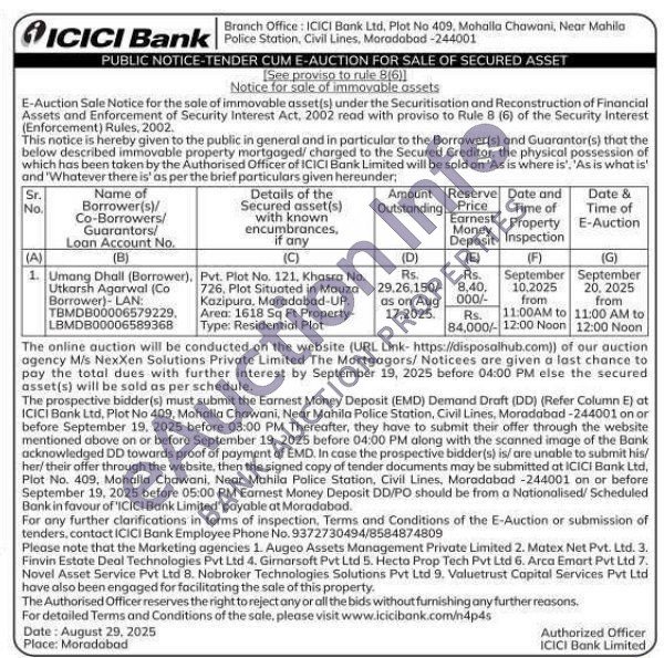 Pvt. Plot No. 121, Khasra No. 726, Plot Situated in Mauza Kazipura, Moradabad-UP. Area: 1618 Sq Ft Property-Type: Residential Plot