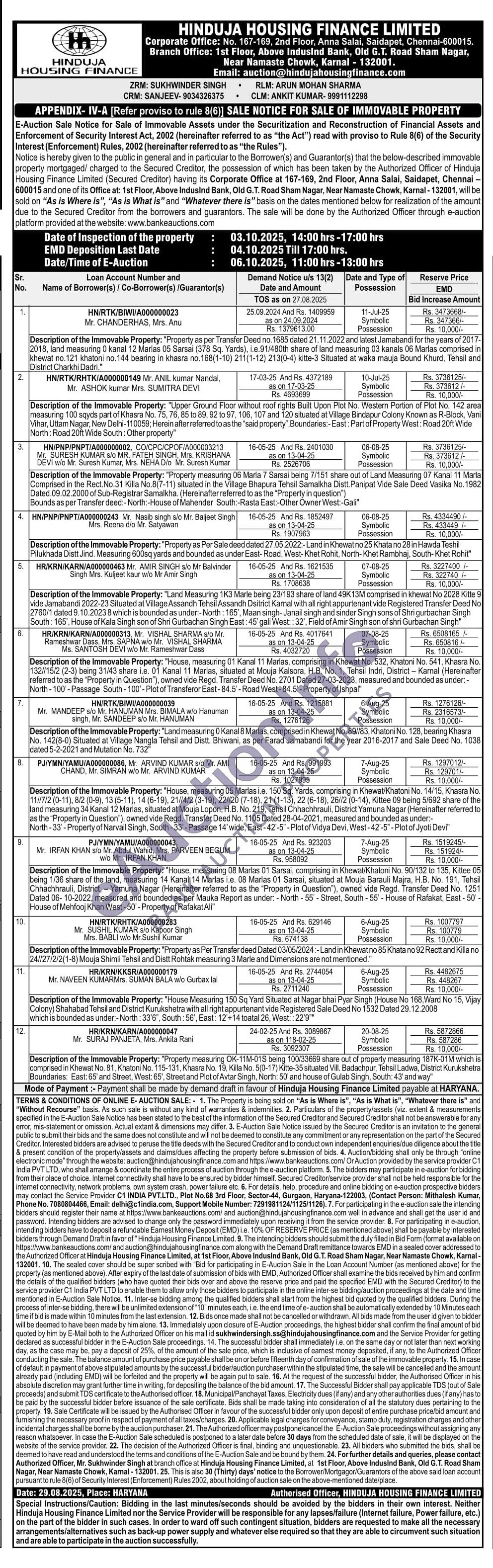"House, measuring 01 Kanal 11 Marlas, comprising in Khewat No. 532, Khatoni No. 541, Khasra No. 132//15/2 (2-3) being 31/43 share i.e. 01 Kanal 11 Marlas, situated at Mouja Kalsora, H.B. No. 1, Tehsil Indri, District – Karnal (Hereinafter referred to as the “Property in Question”), owned vide Regd.Transfer Deed No. 2701 Dated 27-03-2023, measured and bounded as under: - North - 100’- Passage South - 100’- Plot ofTransferor East - 84.5’- Road West- 84.5’- Property of Ishpal"