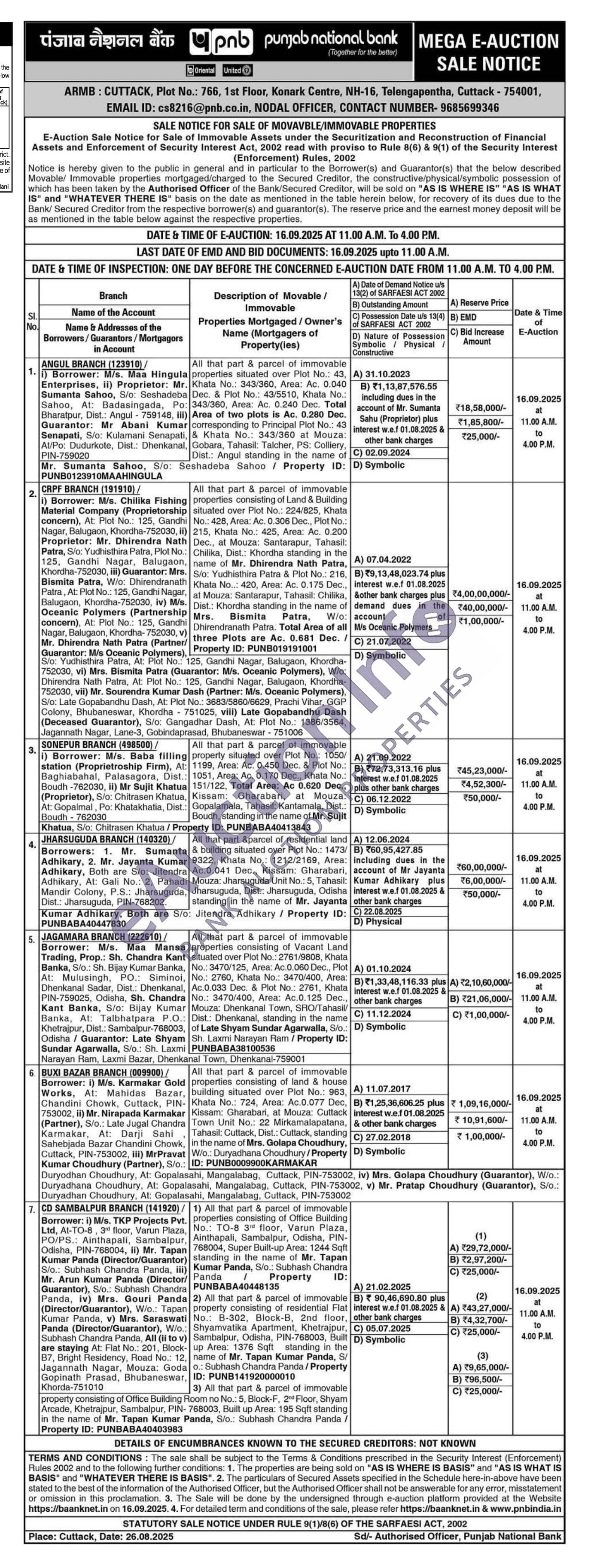 All that part & parcel of immovable property consisting of Office Building Room no No.: 5, Block-F, 2nd Floor, Shyam Arcade, Khetrajpur, Sambalpur PIN-768003, Built up Area: 195 Sqft standing in the name of Mr. Tapan Kumar Panda, S/o.: Subhash Chandra Panda