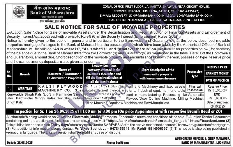 Plant and Machinery and fixed assets refer to Industrial equipment and tools used in manufacturing, Processing like Automati Plywood/Door Cutting Machine, Milling Machine, Lathe Machine, Bandsaw Machine and Raw Material etc.