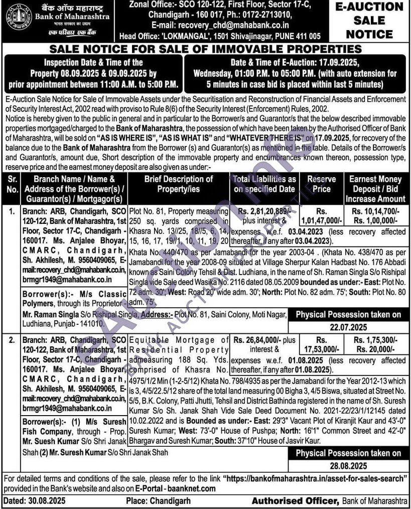 Equitable Mortgage of Residential Property admeasuring 188 Sq. Yds comprised of Khasra No. 4975/1/2 Min (1-2-5/12) Khata No. 798/4935 as per the Jamabandi for the Year 2012-13 which is 3, 4/5/22.5/12 share of the total land measuring 00 Bigha 3, 4/5 Biswa, situated at Street No. , 5/5, B.K. Colony, Patti Jhutti, Tehsil and District Bathinda registered in the name of Sh. Suresh Kumar S/o Sh. Janak Shah Vide Sale Deed Document No. 2021-22/23/1/12145 dated 10.02.2022 and is Bounded as under:- East: 29'3" Vacant Plot of Kiranjit Kaur and 43'-0" Suresh Kumar; West: 73'-0" House of Pushpa; North: 16'1" Common Street and 42'-0" Bhargav and Suresh Kumar; South: 37'10" House of Jasvir Kaur.