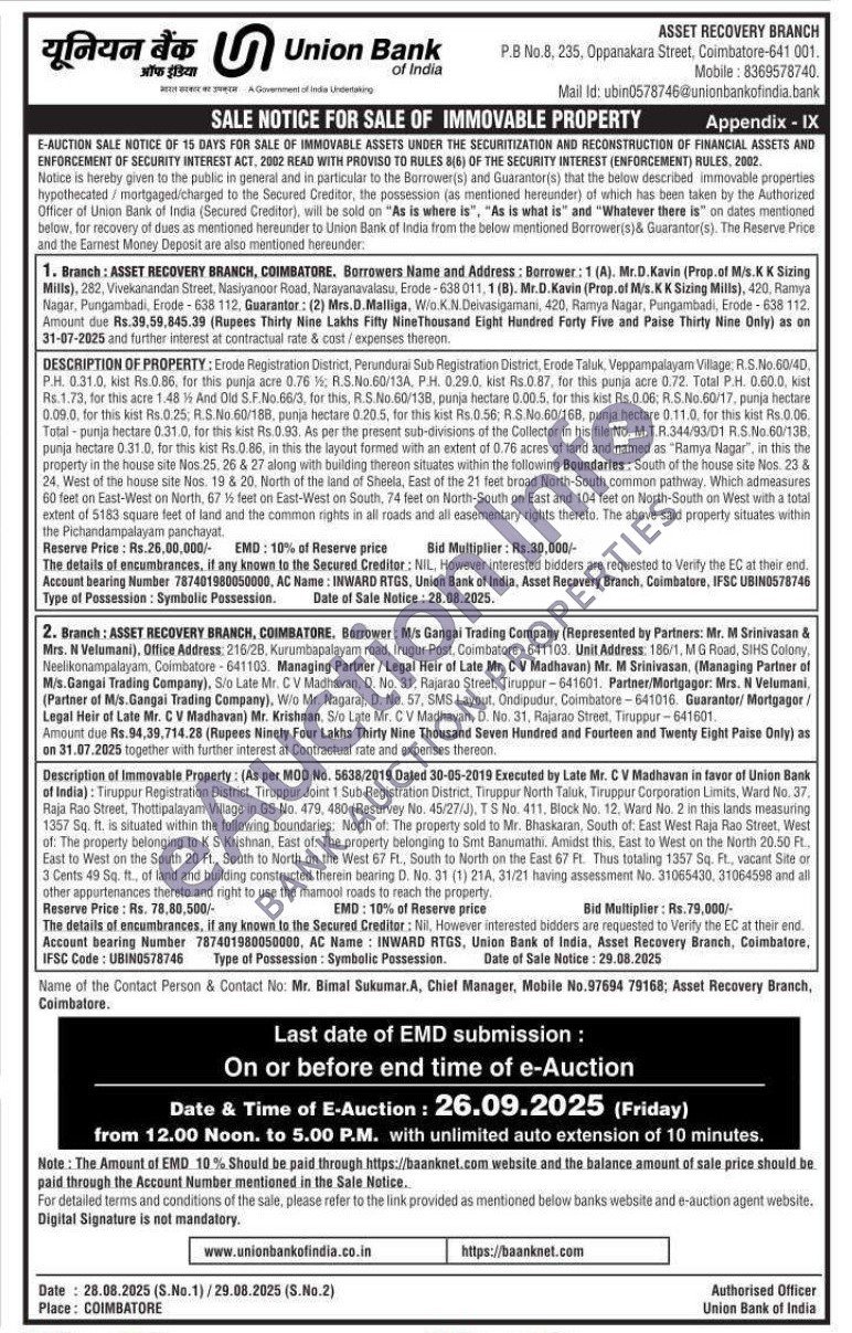 Tiruppur Registration District, Tiruppur Joint 1 Sub Registration District, Tiruppur North Taluk, Tiruppur Corporation Limits, Ward No. 37. Raja Rao Street, Thottipalayam Village in GS No. 479, 480 (Resurvey No. 45/27/J), TS No. 411. Block No. 12, Ward No. 2 in this lands measuring 1357 Sq. ft. is situated within the following boundaries: North of. The property sold to Mr. Bhaskaran, South of: East West Raja Rao Street, West of. The property belonging to KS Krishnan, East of. The property belonging to Smt Banumathi. Amidst this, East to West on the North 20.50 Ft. East to West on the South 20 FL., South to North on the West 67 Ft., South to North on the East 67 Pt. Thus totaling 1357 Sq. Ft., vacant Site or 3 Cents 49 Sq. ft., of land and building constructed therein bearing D. No. 31 (1) 21A, 31/21 having assessment No. 31065430, 31064598 and all other appurtenances thereto and right to use the mamool roads to reach the property
