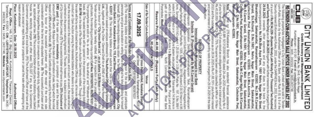 Ramanathapuram Registration District, Ramanathapuram Taluk, Ramanathapuram District, Ramanathapuram Joint II Sub Registrar Office, Alagankulam Group Alagankulam Village Patta No 581, New Patta No: 1305, Survey No: 391/18 extent 2.00.50 Hector 4.95 Acre, Survey No: 391/1A3 extent 125.00 Hector 3.09 Acre Patta No: 197, S.No.389/1 exdent 5.58.50 Hect or in 13.80 Acre Eastem side part Acre 6.90 Total extent 14.94 Acre in which Eastem Side extent 4.98 Acre it is Bounded as Follow: North Punja Land and path of Mohamed Noufer, East: South-North Common path, South River Bank Poramboke. West: Property of Ramesh Babu