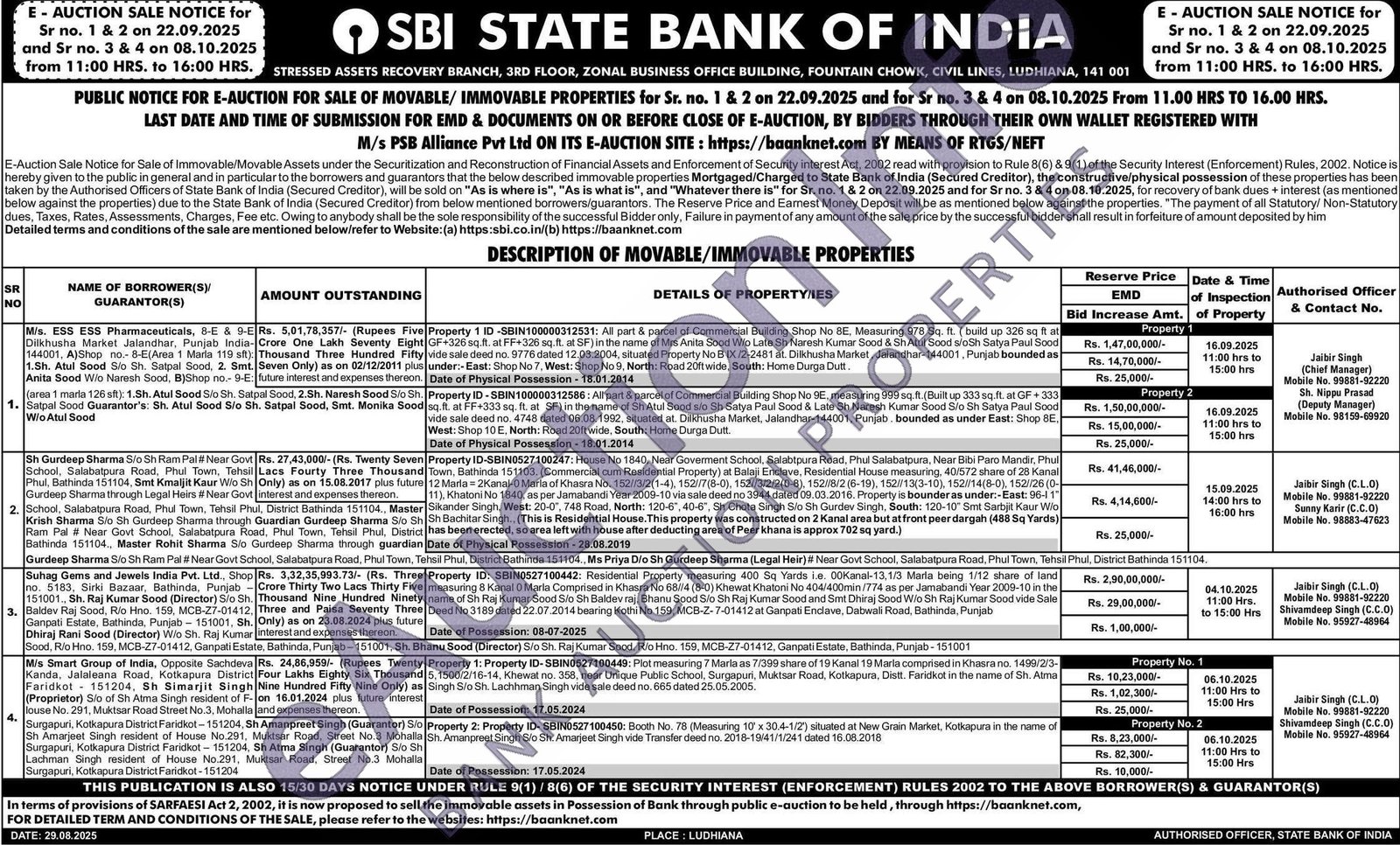 Residential Property measuring 400 Sq Yards i.e. 00Kanal-13,1/3 Marla being 1/12 share of land measuring 8 Kanal 0 Marla Comprised in Khasra No 68//4 (8-0) Khewat Khatoni No 404/400min/774 as per Jamabandi Year 2009-10 in the name of Sh Raj Kumar Sood S/o Sh Baldev raj, Bhanu Sood S/o Sh Raj Kumar Sood and Smt Dhiraj Sood W/o Sh Raj Kumar Sood vide Sale Deed No 3189 dated 22.07.2014 bearing Kothi No 159, MCB-Z-7-01412 at Ganpati Enclave, Dabwali Road, Bathinda, Punjab