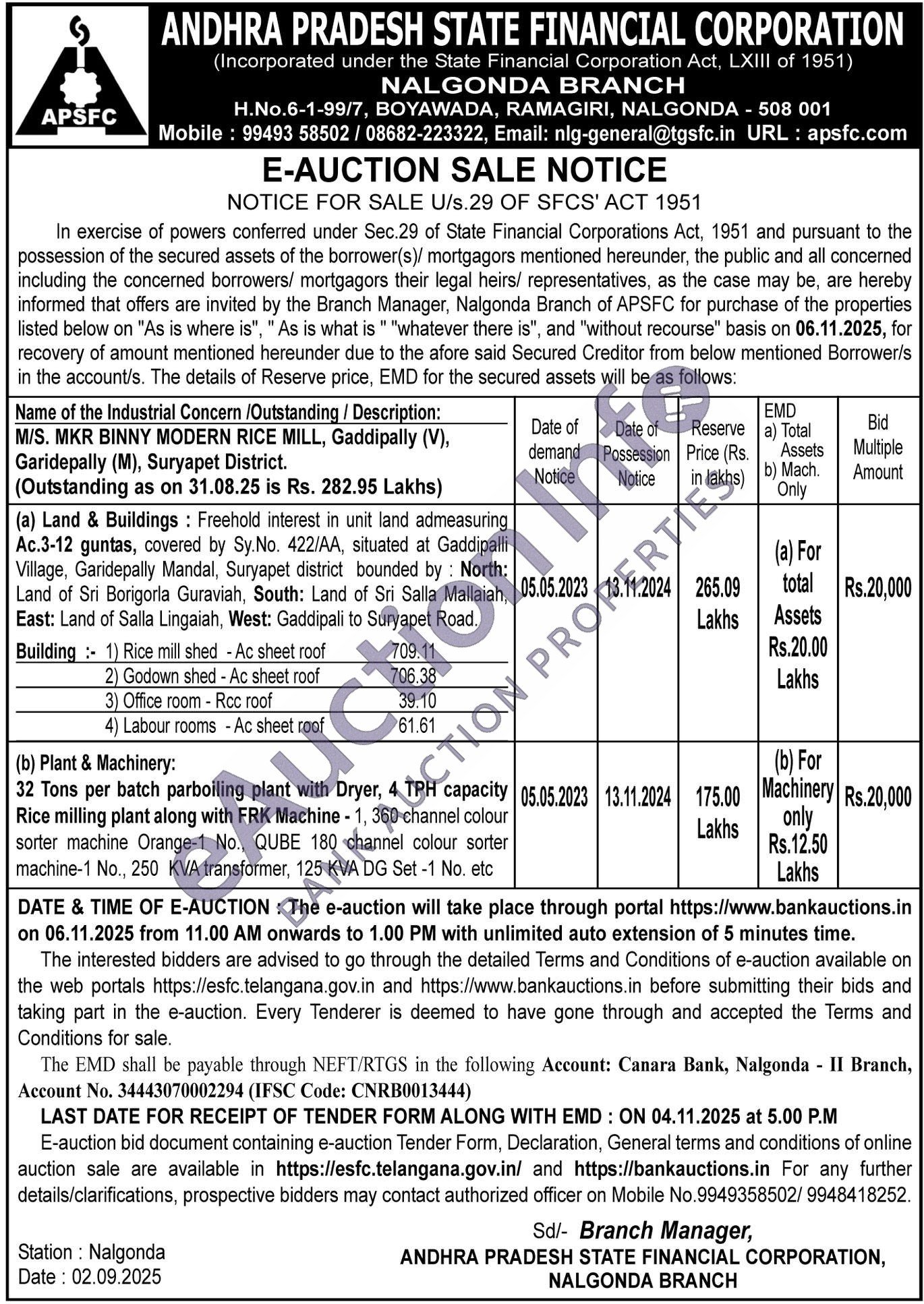 (b) Plant & Machinery:32 Tons per batch parboiling plant with Dryer, 4 TPH capacity Rice milling plant along with FRK Machine - 1, 360 channel colour sorter machine Orange-1 No., QUBE 180 channel colour sorter machine-1 No., 250 KVA transformer, 125 KVA DG Set-1 No. etc