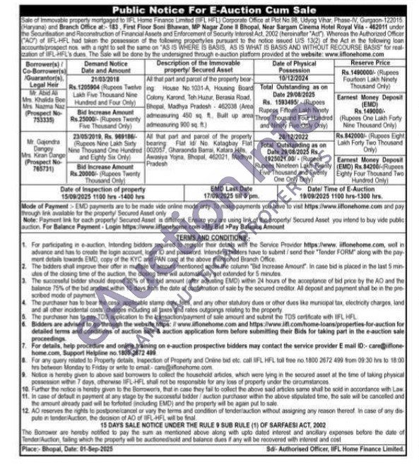 All that part and parcel of the property bear-ing House No.1031-A, Housing Board Colony, Karond, Teh Huzur, Berasia Road, Bhopal, Madhya Pradesh 462030 (Ama admeasuring 450 sq. Bull up are admeasuring 1900