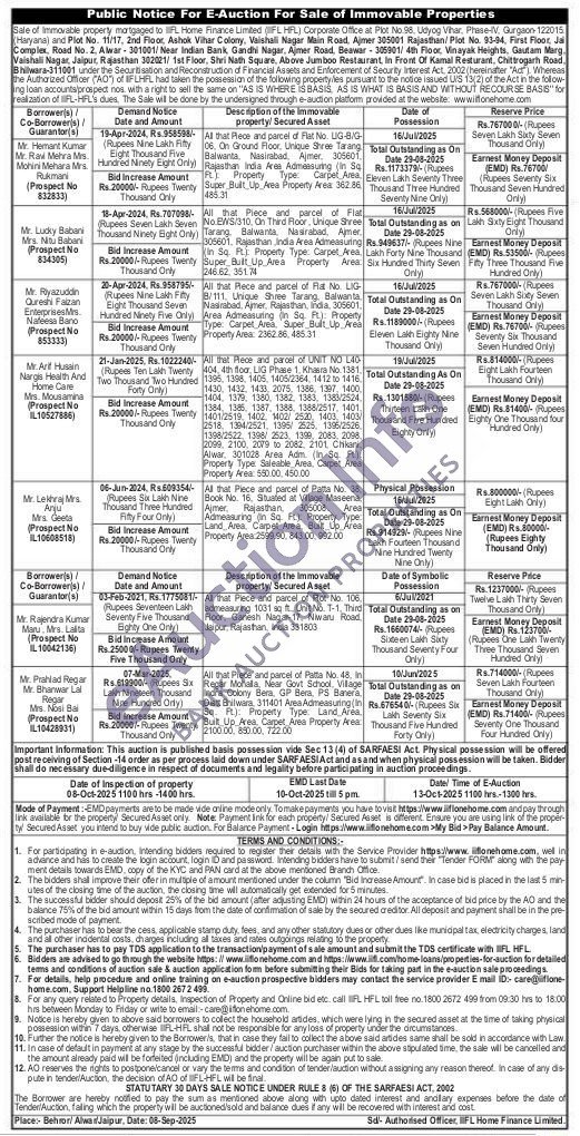All that Plece and parcel of Flat No. LIG-BIG-06. On Ground Floor, Unique Shree Tarang Balwanta, Nasirabad, Ajmer, 305601. Rajasthan India Aree Admeasuring (in Sq Pt Property Type: Carpet Area, Super Built Up Area Property Area: 362.86 485.31