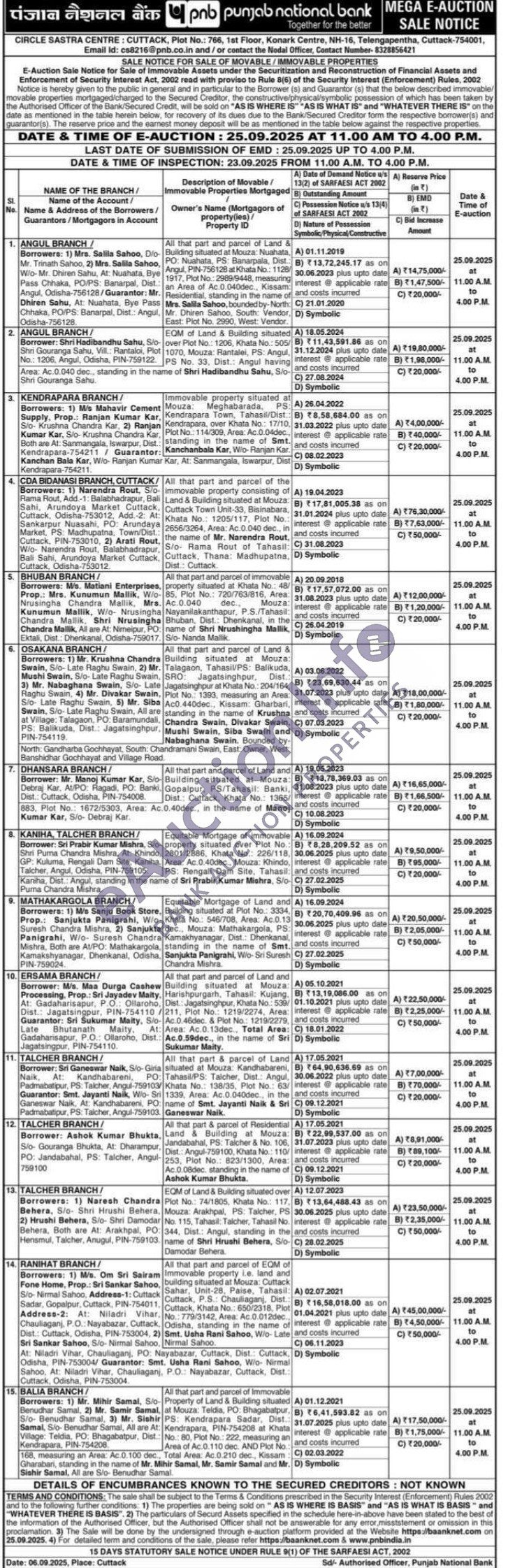 All that part and parcel of Immovable Property of Land & Building situated at Mouza: Teldia, PO: Bhagabatpur, PS: Kendrapara Sadar, Dist.: Kendrapara, PIN-754208 at Khata No.: 80, Plot168, measuring an Area: Ac.0.100 dec., Gharabari, standing in the name of Mr. Sishir Samal, All are S/o- Benudhar Samal. No.: 222, measuring an Area of Ac.0.110 dec. AND Plot No.: Total Area: Ac.0.210 dec., Kissam: Mihir Samal, Mr. Samir Samal and Mr.
