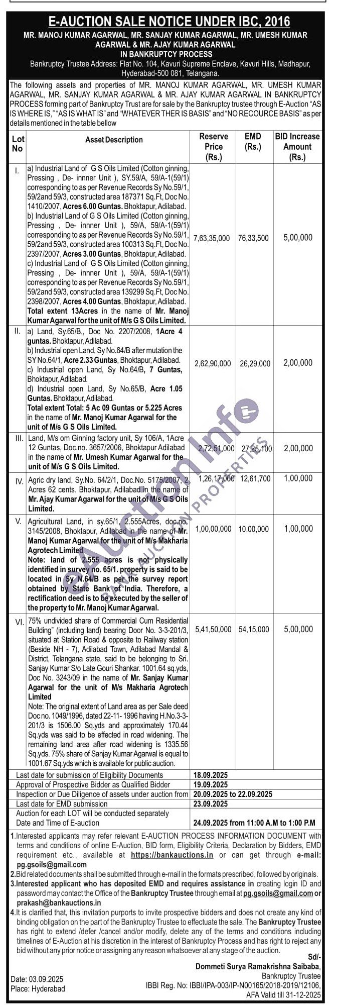 Agric dry land, Sy No. 64/2/1, Doc. No. 5175/2007, 2 Acres 62 cents. Bhoklapur, Adilabad in the name of Mr. Ajay Kumar Agarwal for the unit of Mis GS Oils Limited