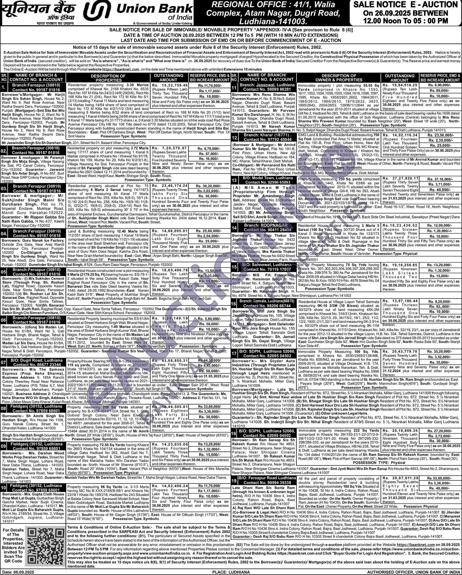 Immovable Property Measuring 100 Sq. Yds. comprised in Khasra No. 2630/2369/2138/466, Khatta No. 658/942, as per Jamabandi for the year 2009-2010, situated at Village Dholewal, H.B. 174, Abaddi known as Mohalla Narankari, Teh. & Distt. Ludhiana as per sale deed bearing Wasika No. 5996 dt. 08/08/2014, and sale deed bearing Wasika No 441 dt. 07/04/1993 standing in the name of St. Hushiar Singh S/o Sh. Ram Singh and bounded as: East : Payara Singh (20'8"), West: Galli(20'8"), North: Manmohan Singh(45'6"), South: Gurdayal Singh (45'6")