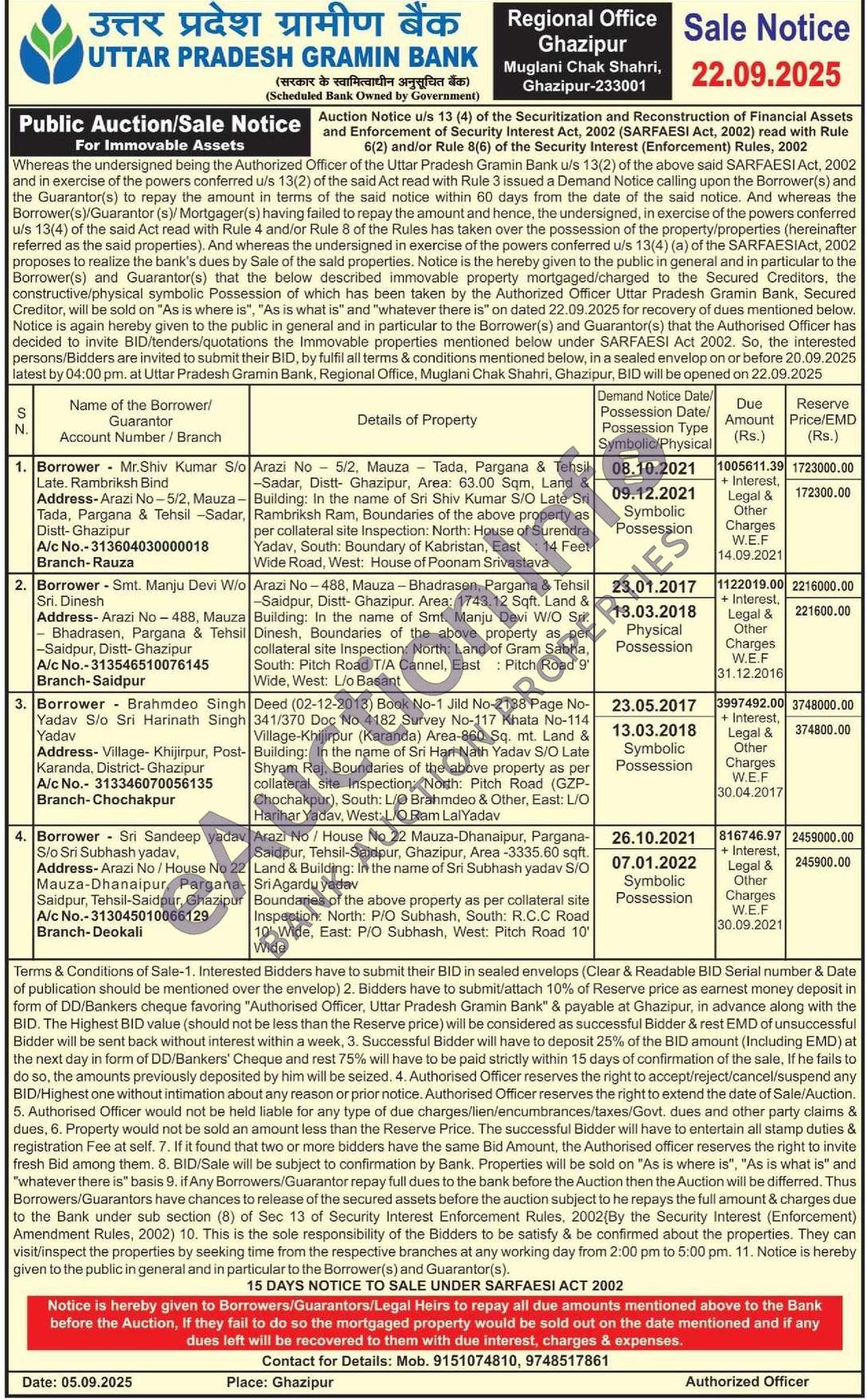 Arazi No 5/2, Mauza Tada, Pargana & Tehsil -Sadar, Distt- Ghazipur, Area: 63.00 Sqm, Land & Building: In the name of Sri Shiv Kumar S/O Late Sri Rambriksh Ram, Boundaries of the above property as per collateral site Inspection: North: House of Surendra Yadav, South: Boundary of Kabristan, East: 14 Feet Wide Road, West: House of Poonam Srivastava