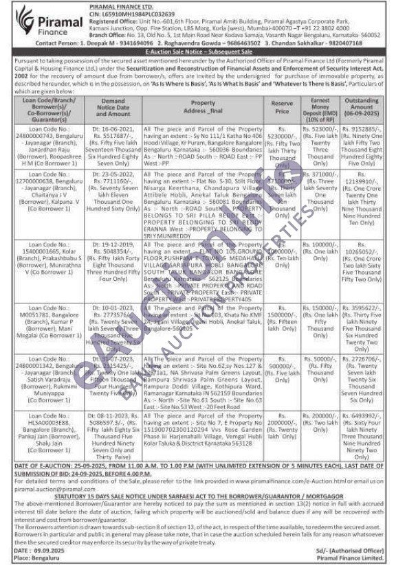 2) All The piece and Parcel of the Property having an extent Flat No. 5-30, Stilt Floor, Nisarga Keerthana, Chandapura Village Attibele Hobli, Anekal Taluk Bengalura Bengaluru Karnataka 560081 Boundaries As North ROAD South PROPERTY BELONGS TO SRI PILLA REDDY East PROPERTY BELONGING TO SRI REDDY ERANNA West: PROPERTY BELONGING TO SRI Y MUNIREDDY