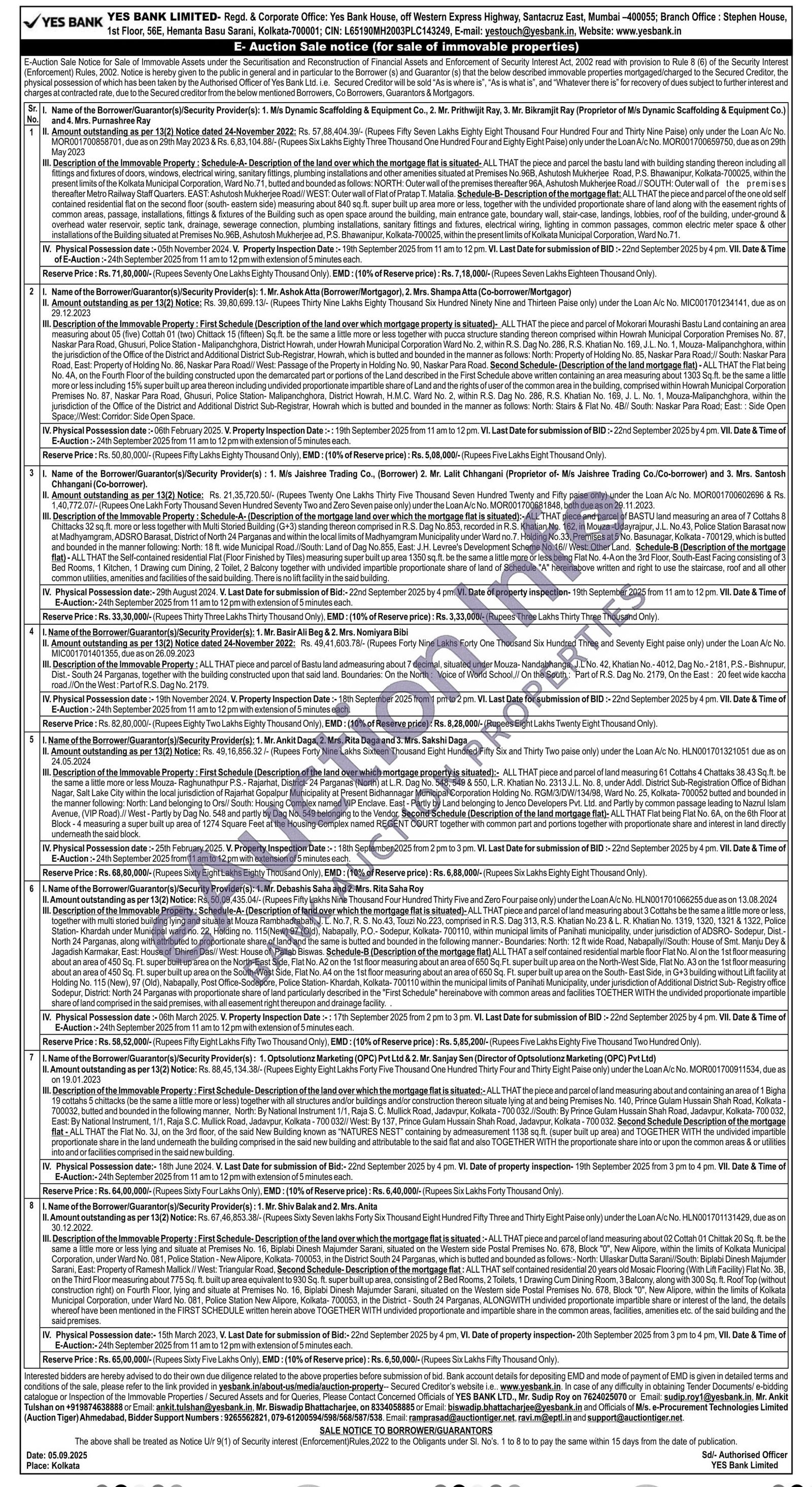 situated:-ALL THAT piece and parcel of land measuring about 02 Cottah 01 Chittak 20 Sq. ft. be the same a little more or less lying and situate at Premises No. 16, Biplabi Dinesh Majumder Sarani, situated on the Western side Postal Premises No. 678, Block "0", New Alipore, within the limits of Kolkata Municipal Corporation, under Ward No. 081, Police Station-New Alipore, Kolkata-700053, in the District South 24 Parganas, which is butted and bounded as follows:- North: Ullaskar Dutta Sarani//South: Biplabi Dinesh Majumder Sarani, East: Property of Ramesh Mallick //West: Triangular Road, Second Schedule-Description of the mortgage flat: ALL THAT self contained residential 20 years old Mosaic Flooring (With Lift Facility) Flat No. 3B, on the Third Floor measuring about 775 Sq. ft. built up area equivalent to 930 Sq. ft. super built up area, consisting of 2 Bed Rooms, 2 Toilets, 1 Drawing Cum Dining Room, 3 Balcony, along with 300 Sq. ft. Roof Top (without construction right) on Fourth Floor, lying and situate at Premises No. 16, Biplabi Dinesh Majumder Sarani, situated on the Western side Postal Premises No. 678, Block "0", New Alipore, within the limits of Kolkata Municipal Corporation, under Ward No. 081, Police Station New Alipore, Kolkata-700053, in the District - South 24 Parganas, ALONGWITH undivided proportionate impartible share or interest of the land, the details whereof have been mentioned in the FIRST SCHEDULE written herein above TOGETHER WITH undivided proportionate and impartible share in the common areas, facilities, amenities etc. of the said building and the said premises.