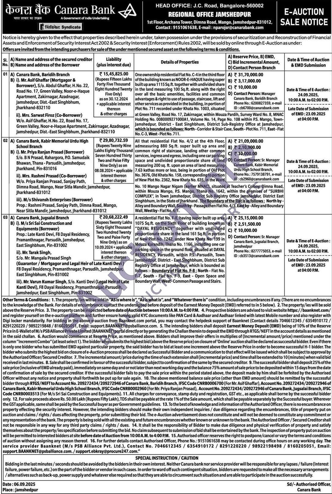 One ownership residential Flat No. C-4 in the third floor of the building known as NOOR-E-HAQUE having super built up area 1115 Sq.ft. together with undivided share in the land measuring 100 Sq.ft. along with the right over all the basic amenities, facilities and common advantages & right to use of passage, staircase, lift and other services as provided in the building, in portion of Plot No. 711 recorded under Khata No. 1003, situated at Green Valley, Road No. 17, Zakirnagar, within Mouza Pardih, Survey Ward No. 8, MNAC Holding No. 0080009271000A1, Volume No. 14, Page No. 108 within P.S. Mango, Town-Jamshedpur, District - East Singhbhum, District Sub-Registry Office at Jamshedpur, which is bounded as follows: North-Corridor & Stair Case, South-Plot No. 711, East-Flat No. C-3, West-Plot No.711.
