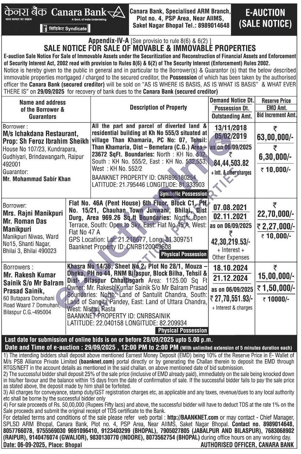 Khasra No 14/36, Sheet No 2, Plot No 28/1, Mouza Dheka, PH no 44, RNM Bilaspur, Block Bilha, Tehsil & Dist- Bilaspur Chhattisgarh Area: 1125.00 Sq Ft Owner: Mr. Rakesh Kumar Sainik S/o Mr Balram Prasad Boundaries: North: Land of Santulit Chandra, South: Land of Sangita Pandey, East: Land of Uttara Chandra, West: Nistari Rasta