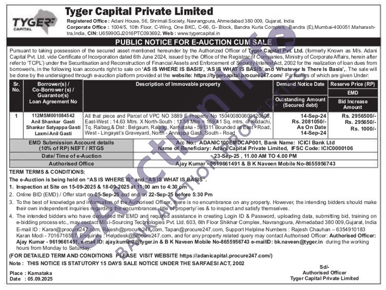 All that piece and Parcel of VPC NO 3889 E Property No 150400800600120608, East-West: 14.63 Mirs. X North-South: 11.58 Mtrs 169.41 Sq. mtrs, of Kudachi, Tq. Raibag, & Dist: Belgaum, Raibag, Kamataka-591311 Bounded as East-Road, West-Lingayat's Graveyard, North-Annappa Gasti, South - Road