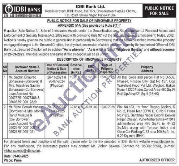 Flat No. 103, 1st floor, Rajyog Society, S No. 2, Hissa No. 100/10 E, S No.5 Hissa No./19/2, Sambhaji Nagar Colony, Benkar Nagar, Dhayari, Pune-Maharashtra-411041 administered area 476 Sq. Ft. le. 44.22 Sq.Mtrs along with Terrace, lobby and Open Car Parking C-33 area 100 Sq ft. i.e. 9.29 Sq. mtr (1BHK)