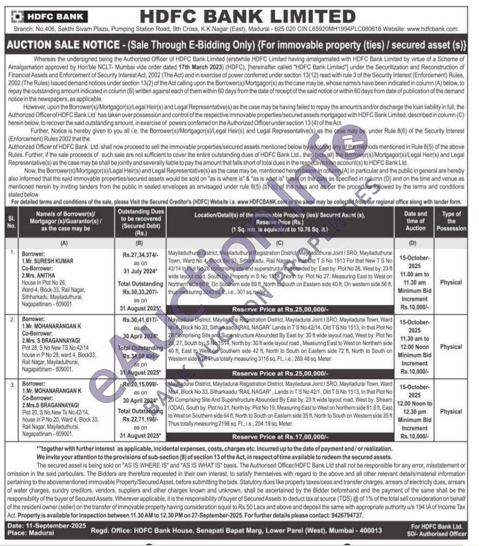 2) Mayiladurai District, Mayiladurai Registration District, Mayiladurai Joint ISRO, Mayiladurai Town, Ward No 4, Block No 33, Sitharkaadu "RAIL NAGAR" Lands in TS No 42/14, OldTS No 1513, In that Plot No 28 Comprising Site and Superstructure Abounded By East by: 30 ft wide layout road, West by: Plot No 26, 27, South by. S No 1514, North by: 30 ft wide layout road, Measuring East to West on Northern side 40 ft. East to West on Southem side 42 ft, North to South on Eastem side 72 ft, North to South on Westem side 80 ft Thus totally measuring 3116 sq. Ft, Le, 289.48 sq. Meter
