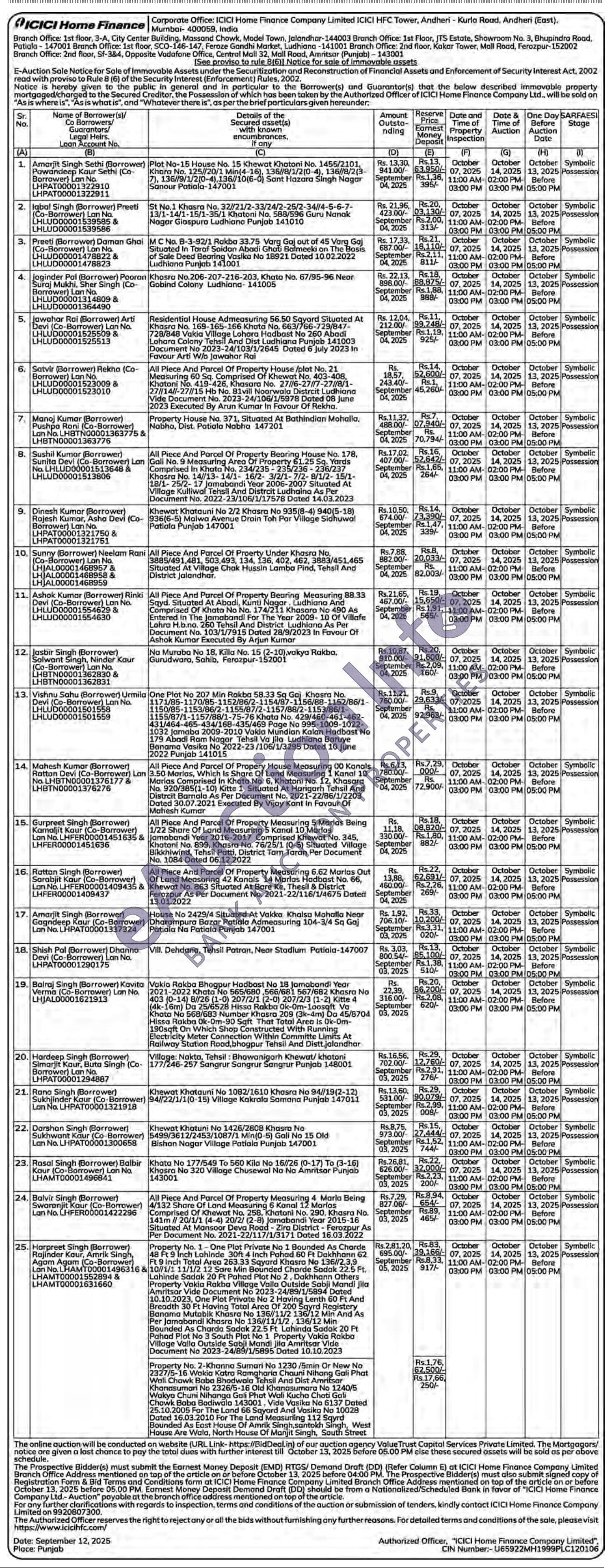 3) MC No. 8-3-92/1 Rakbo 33.75 Varg Gaj out of 45 Varg Gaj Situated In Taraf Saidan Abadi Ghati Balmeeki on The Bosis of Sale Deed Bearing Vasika No 18921 Dated 10.02.2022 Ludhiana Punjab 141001
