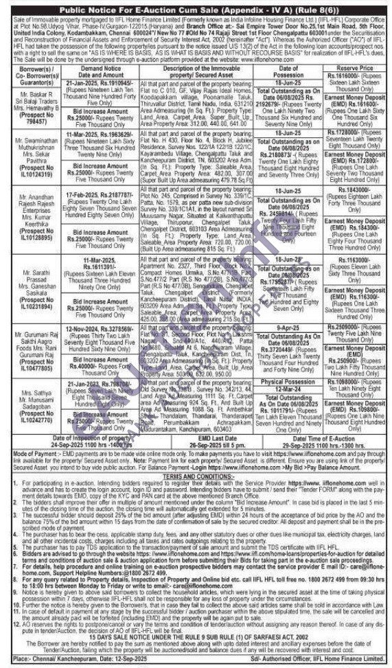 1) All that part and parcel of the property bearing Flat no C 010, GF. Vijay Rajas Ideal Homes Koodapakkam village, Poonamalle Taluk Thiruvallur District, Tamil Nadu, India, 631210 Area Admeasuring (In Sq. Ft) Property Type: Land Area, Carpet Area Super Bult Up Area Property Area: 312.00, 440.00, 641.00