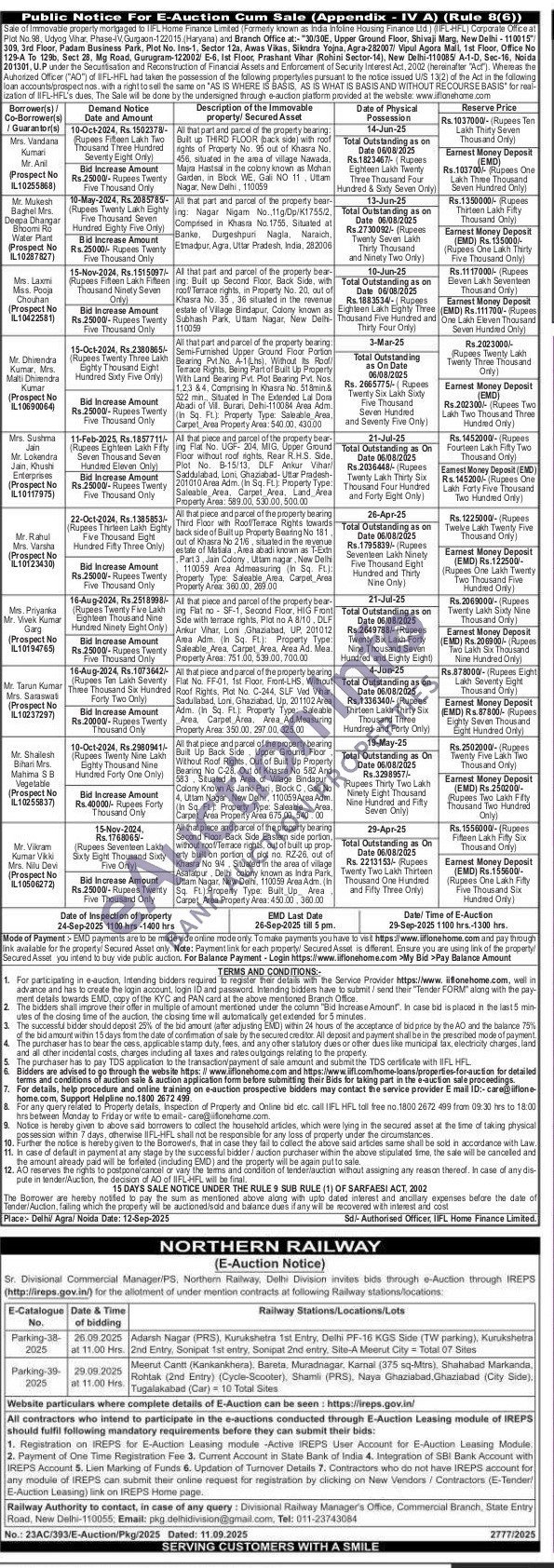 10) All that piece and parcel of the property bearing Second Floor, Back Side Eastern side portion, without roof Terrace rights, out of built up prop-erty built on portion of plat no. RZ-26, out of Khasra No 94, Situated in the area of village Asalatpur, Delhi colony known as Indra Park, Uttam Nagar, New Delhi, 110059 Area Adm. (In Sq. Ft) Property Type: Built Up Area Carpet Area Property Area: 450.00 360.00