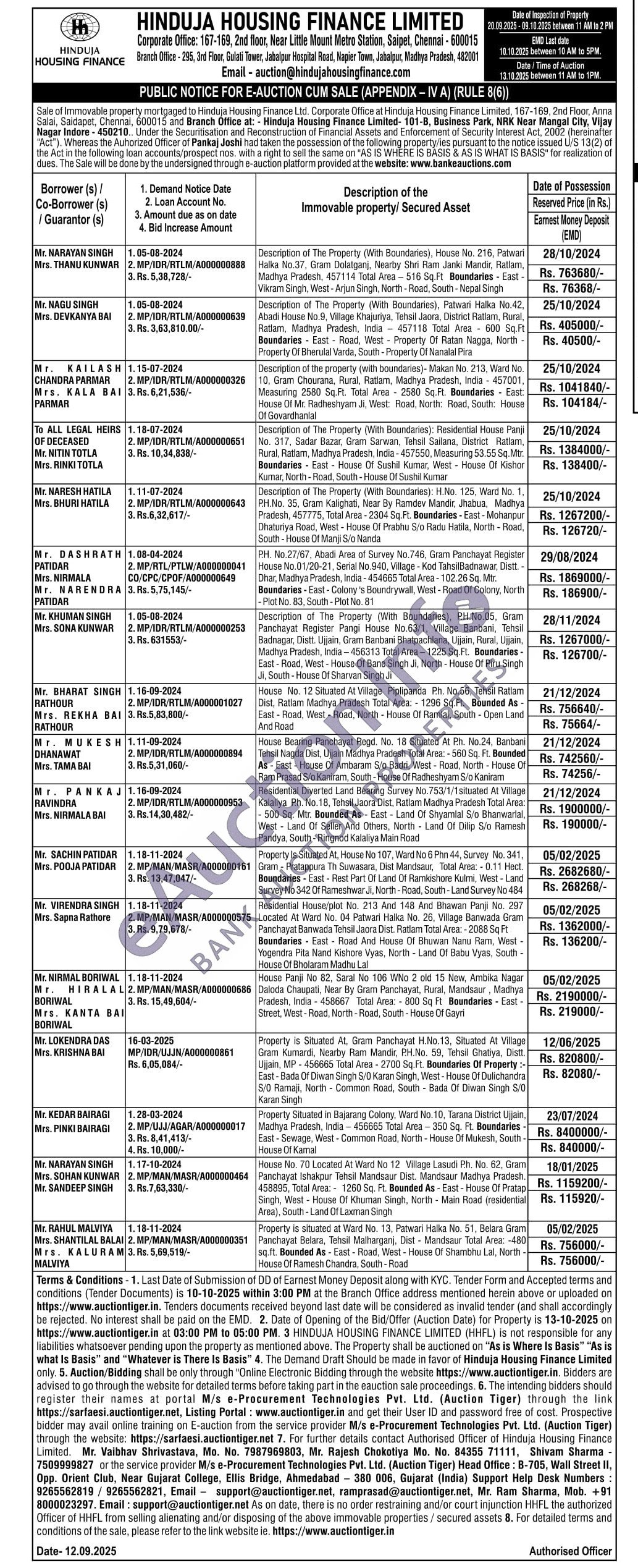 6) P.H. No.27/67, Abadi Area of Survey No.746, Gram Panchayat Register House No.01/20-21, Serial No.940, Village - Kod TahsilBadnawar, Distt. -Dhar, Madhya Pradesh, India-454665 Total Area-102.26 Sq. Mtr. Boundaries - East - Colony 's Boundrywall, West - Road Of Colony, North -Plot No. 83, South - Plot No. 81