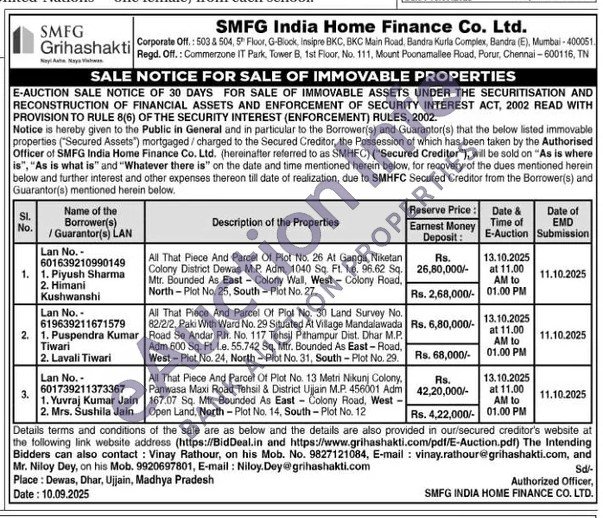 All That Piece And Parcel Of Plot No. 30 Land Survey No. 82/2/2, Paki With Ward No. 29 Situated At Village Mandalawada Road Se Andar Ph. No. 117 Tehsil Pthampur Dist. Dhar M.P. Adm 600 Sq. Ft. l.e. 55.742 Sq. Mtr. Bounded As East-Road, West-Plot No. 24, North-Plot No. 31, South-Plot No. 29.
