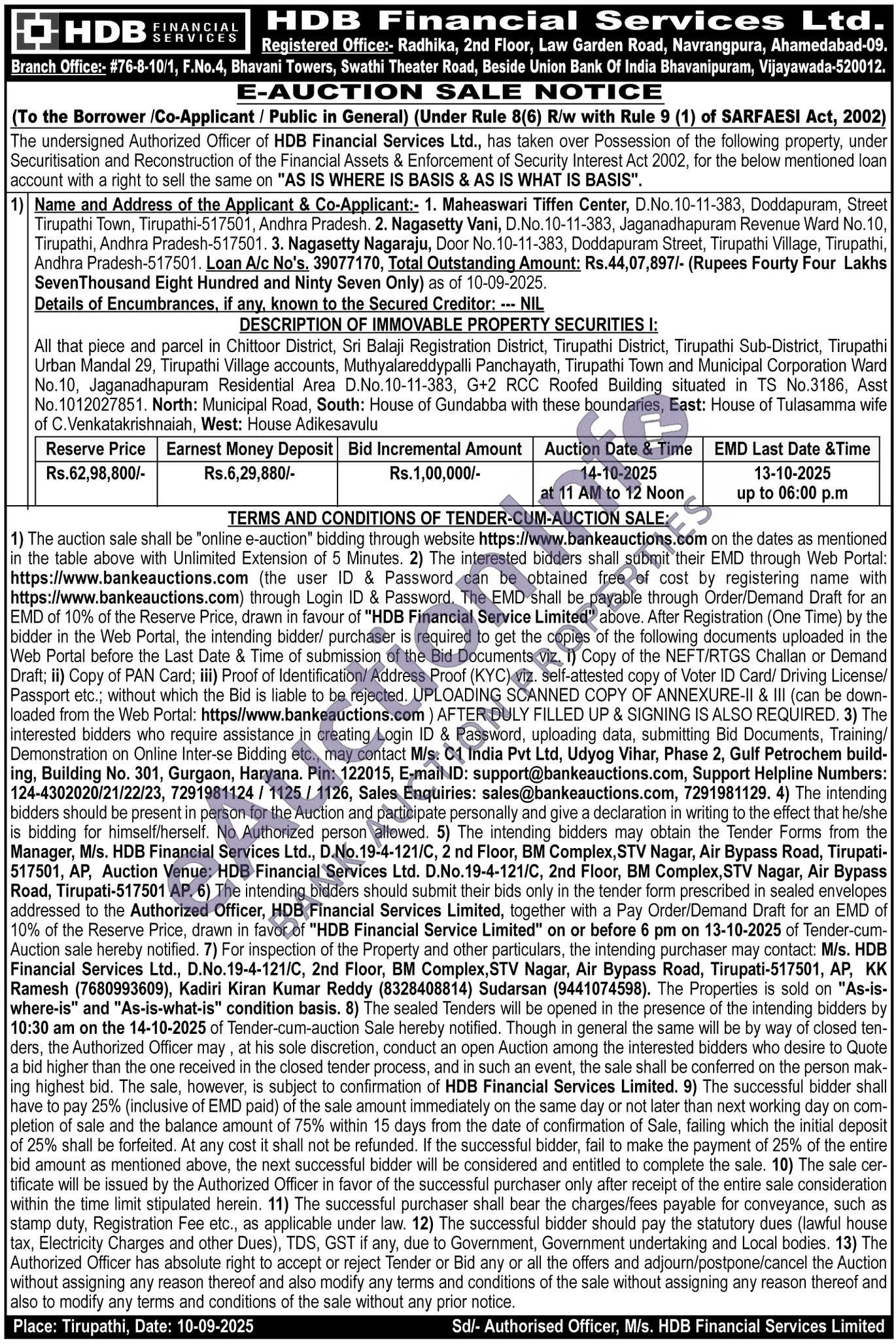 All that piece and parcel in Chittoor District, Sri Balaji Registration District, Tirupathi District, Tirupathi Sub-District, Tirupathi Urban Mandal 29, Tirupathi Village accounts, Muthyalareddypalli Panchayath, Tirupathi Town and Municipal Corporation Ward No.10, Jaganadhapuram Residential Area D.No.10-11-383, G+2 RCC Roofed Building situated in TS No.3186, Asst No.1012027851. North: Municipal Road, South: House of Gundabba with these boundaries, East: House of Tulasamma wife of C. Venkatakrishnaiah, West: House Adikesavulu