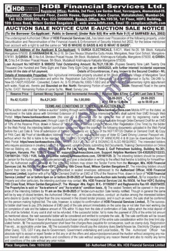 Details of Immovable Properties: Non Agricultural immovable property situated at 5th Block of Kalipalla Village of Mangalore Taluk within Mangalore city Corporation and within the Registration Sub-District of Mangalore Taluk and comprised in Sy. No. Old-248-1p. New-55-1A6(P) KISSAM Converted, Extent-Ac 0-100 (Khata No. 1060)-T-58/2 and all Mammol and easementary nights appurtenant with water, Road etc. thereto and Bounded on the: North: Remaining Portion of same Sy No, South: Reserved Road in the same Sy.No. EAST: Remaining Portion of same Sy No, West: Survey Line
