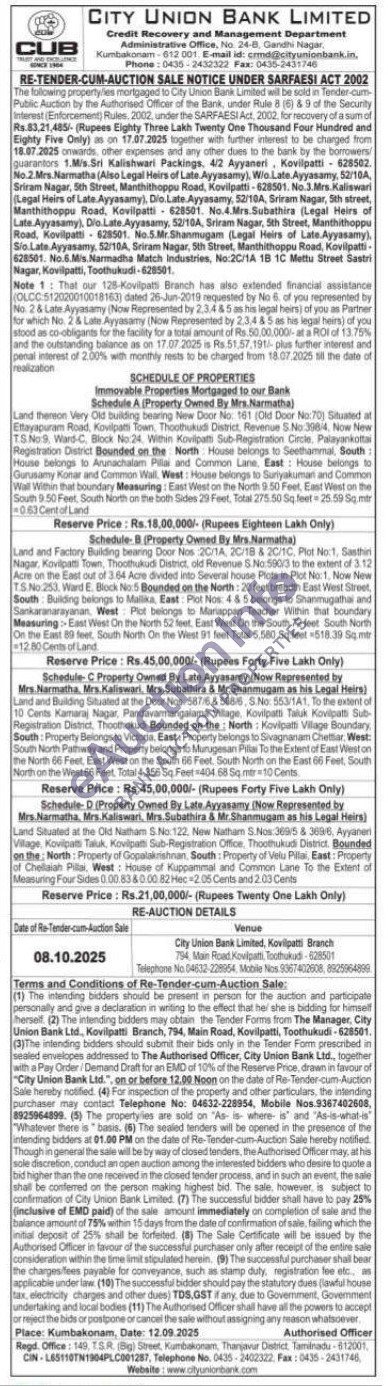 4) Land Situated at the Old Natham S.No 122. New Natham S. Nos 369/5 & 369/6, Ayyaneri Village, Kovilpatti Taluk, Kovilpatti Sub-Registration Office, Thoothukudi District. Bounded on the North: Property of Gopalakrishnan, South: Property of Velu Pillai, East: Property of Chellaiah Pillai, West House of Kuppammal and Common Lane To the Extent of Measuring Four Sides 0.00.8380.00.82 Hec -2.05 Cents and 2.03 Cents