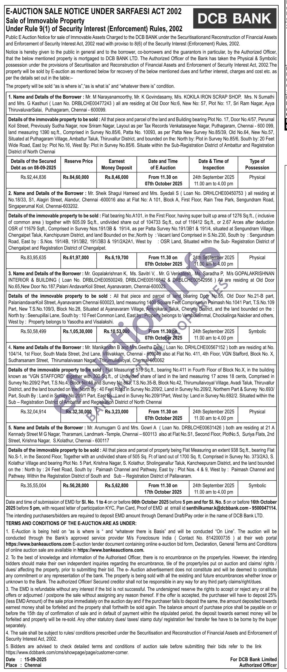 3) All that piece and parcel of land bearing Door No.65, Old Door No.21-B part, PalaniandavarKoil Street, Ayanavaram Chennai 600023, land measuring 1400 Square Feet Comprised in Paimash No. 1041 Part, T.S.No. 109 Part, New T.S.No. 109/3, Block No.28, Situated at Ayanavaram Village, Aminjikarai Taluk, Chennai District, and the land bounded on the North by: Seenupillai Lane, South by: 10 Feet Common Land, East by: Property belongs to Vembuliammal, Chockalinga Naicker and others, West by: Property belongs to Yasodha and Visalakshi.