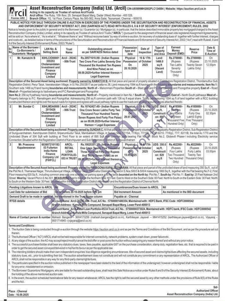 2) All that piece and parcel of property situated at Chengalpattu Registration District, Sub Registration District of Sunguvarchatram, Kanchipuram District, Sriperumbudur Taluk, Mambakkam Village, in Survey Nas. 77/15A, 77/8(p), 77/158, 77/10, 62/10, 77/6lp), 77/7, 62/118, the total Ac. 1770 and the Undivided Share of 304 Sqft with building at Third Floor to an extent of 895 Sqft with common path bearing Flat No.331 Block No.2. Globevill Phase- including Electricity service Connection. Situated within the Registration District of Kanchipuram and Sub Registration District of Sunguvarchatram