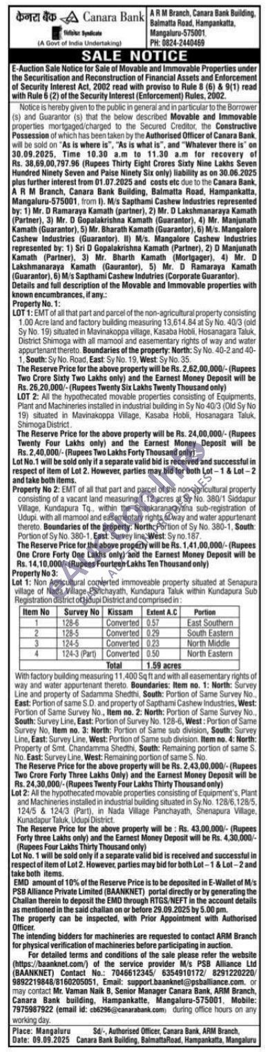 All the hypothecated movable properties consisting of Equipment Plant and Mach installed in industrial building situated in Sy. No. 128/6,1285 124/5 & 1243 (Part), in Nada Village Panchayath, Shenapura Village adapur Taluk Udupi Dist
