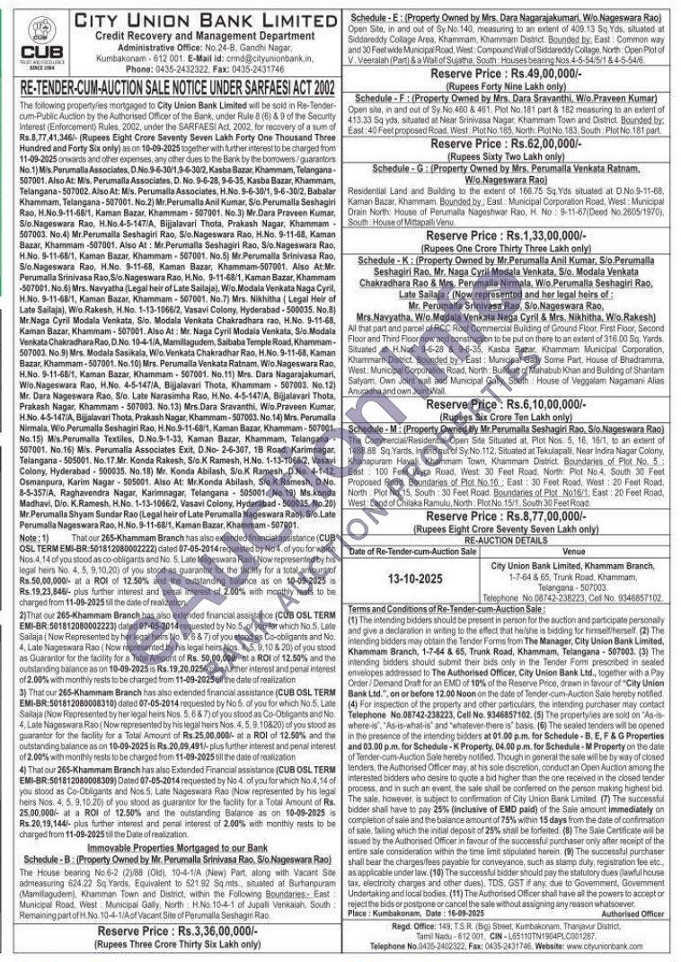 6) The Commercial/Residential Open Site Situated at, Plot Nos 5, 16, 16/1, to an extent of 1488.88 Sq. Yards, in and out of Sy. No. 112, Situated at Tekulapali, Near Indira Nagar Colony, Khanapuram Haveli, Khammam Town, Khammam District Boundaries of Plot No. 5 East 100 Feet Wyra Road, West. 30 Feet Road. North: Plot No.4. South 30 Feet Proposed Road, Boundaries of Plot No.16 East: 30 Feet Road, West: 20 Feet Road, North Plot No. 15, South: 30 Feet Road Boundaries of Plot No16/1, East: 20 Feet Road, West: Land of Chilaka Ramulu, North Plot No 15/1, South 30 Feet Road