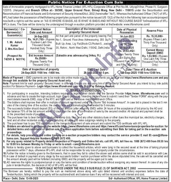 All that part and parcel of the property bearing Flat No-1, Ground Floor Area Admeasuring 355 Sq.Ft. Bult Up Area, Lig Flat, Block-C3, Pocket-5, sector-35, Rohini, North West Delhi, 110042, Delhi,India